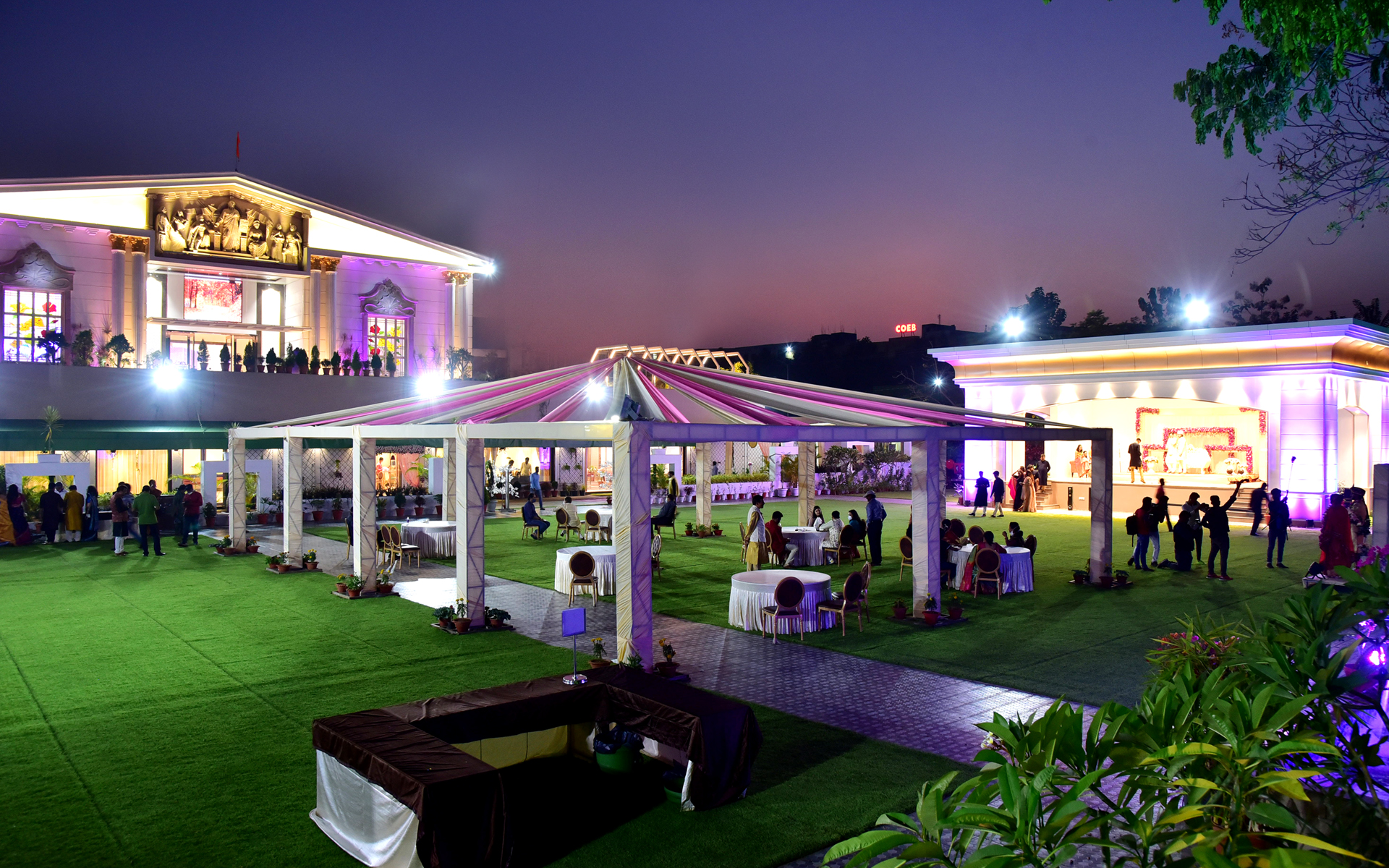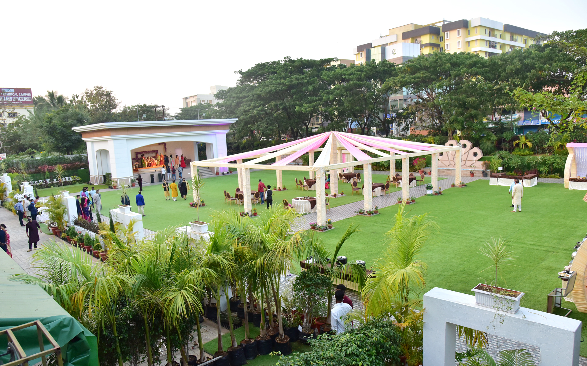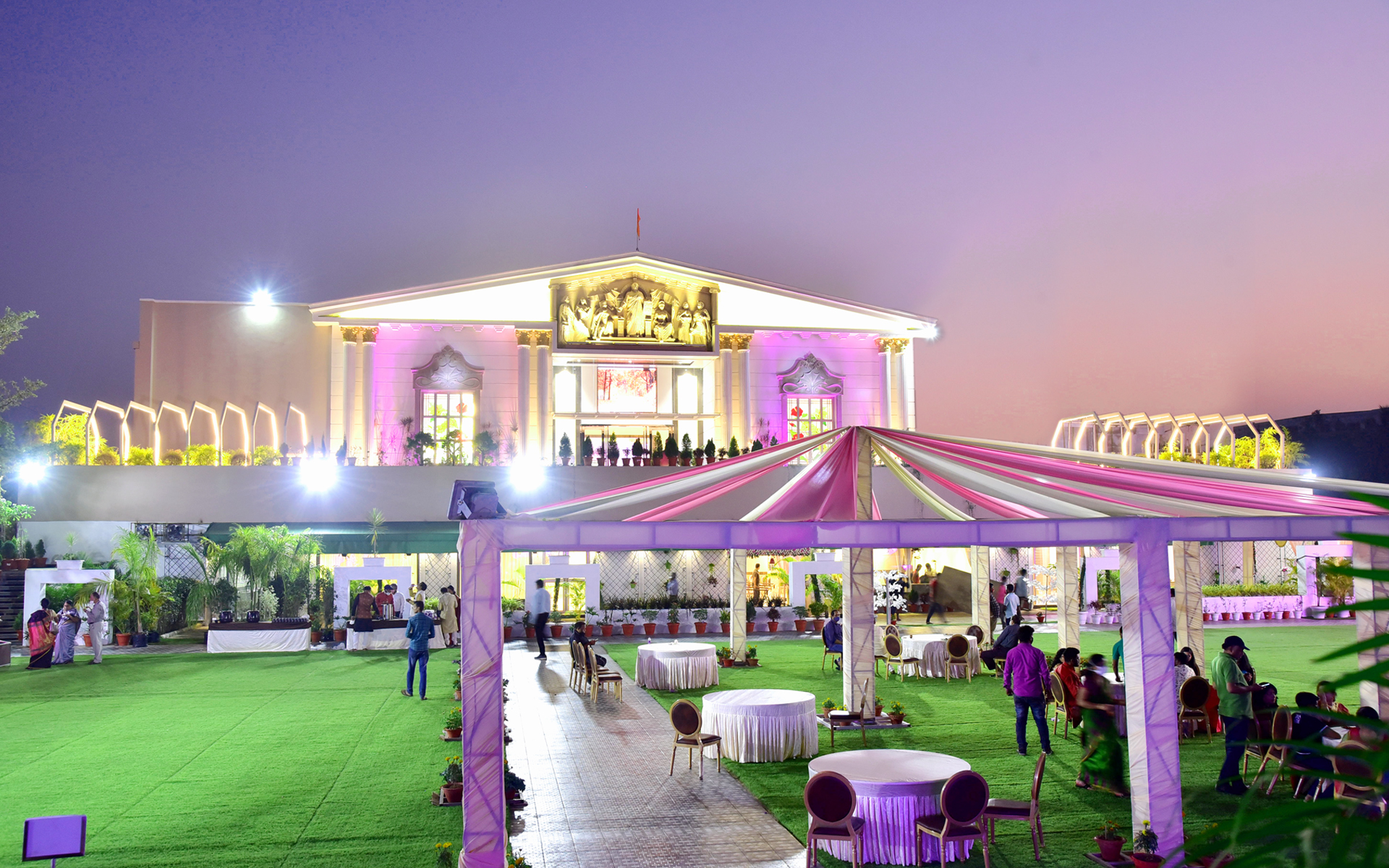 12,000 Sqft. AC Hall + 3,000 Sqft. Dining Area + 4,500 Sqft. Front Courtyard