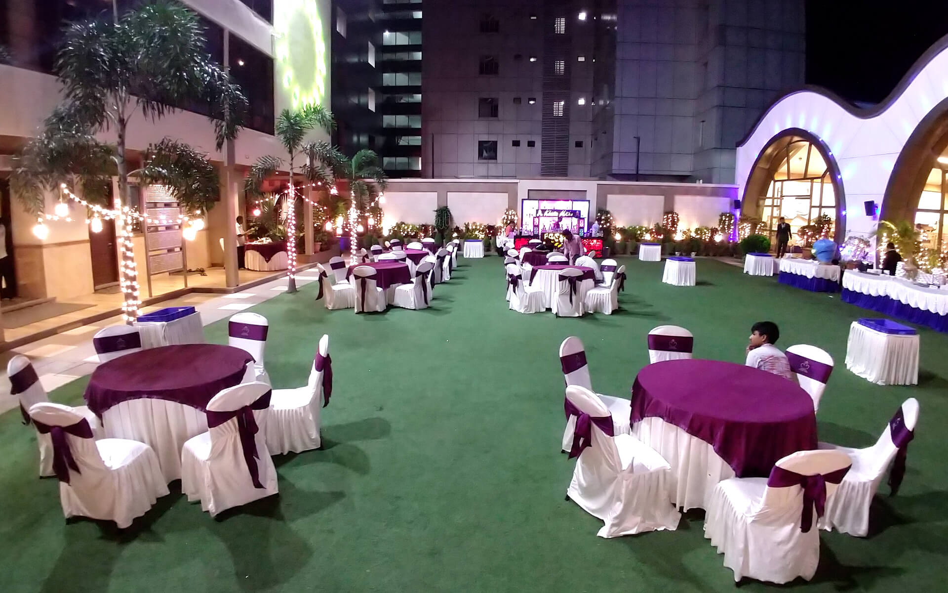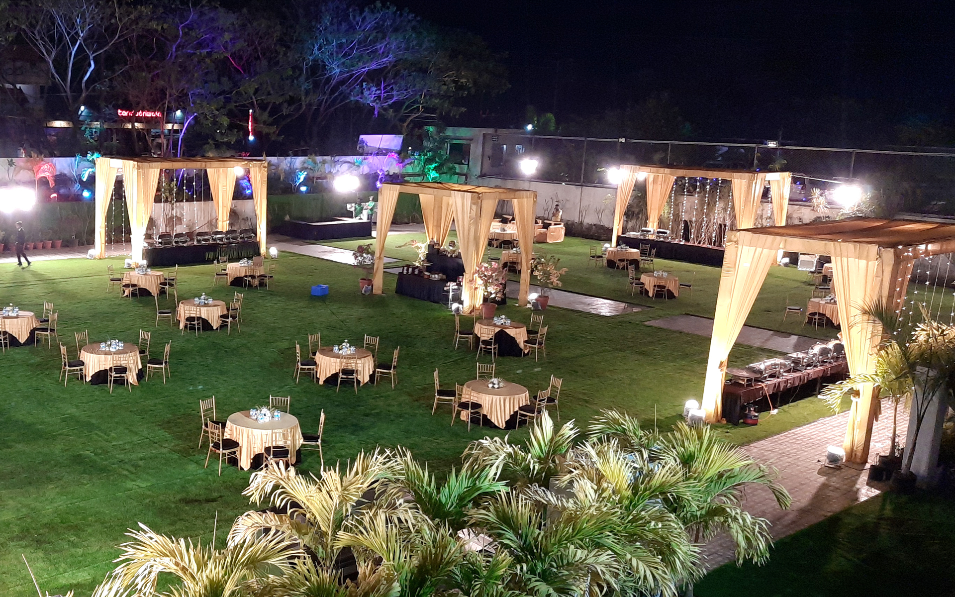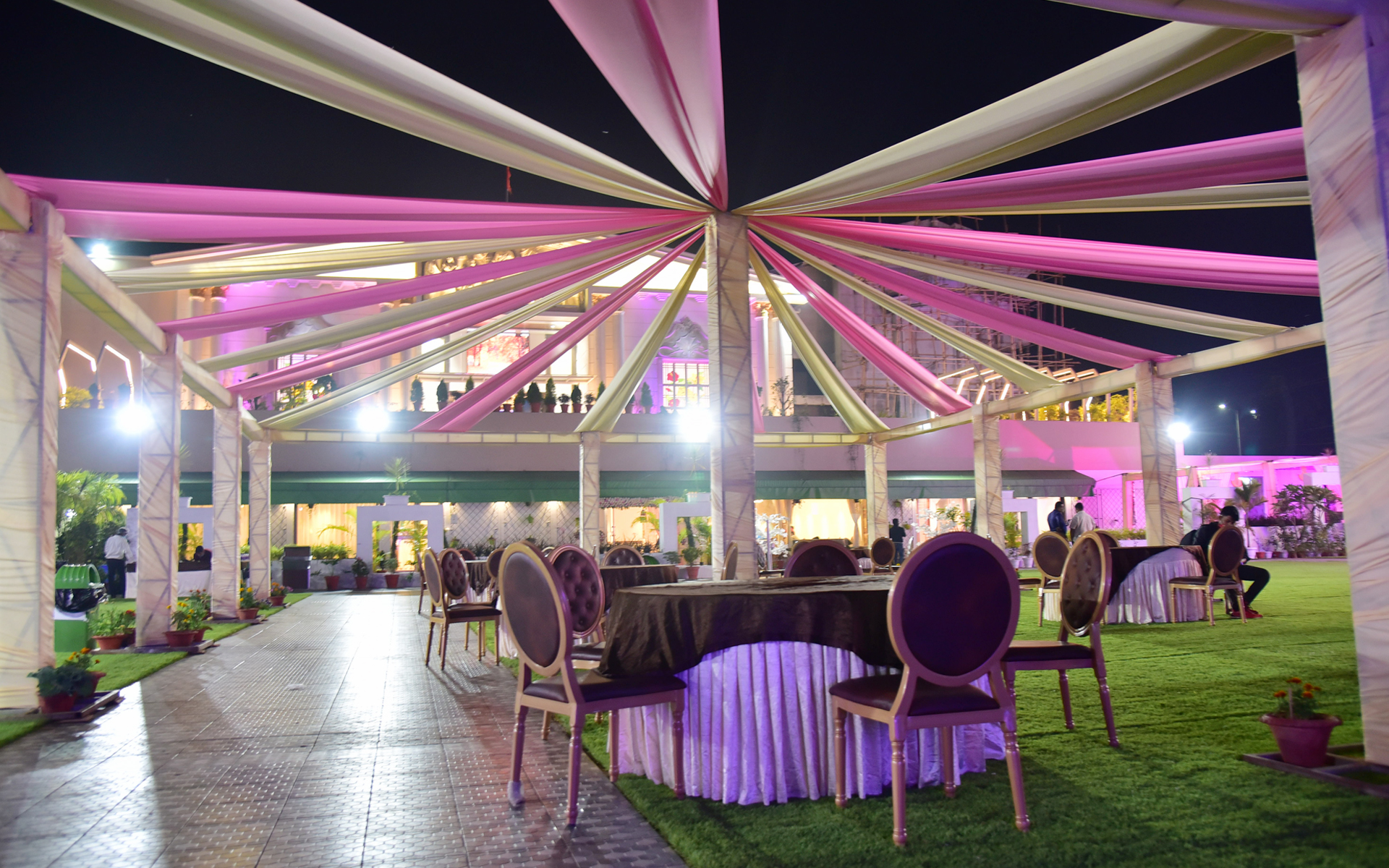 12,000 Sqft. AC Hall + 3,000 Sqft. Dining Area + 4,500 Sqft. Front Courtyard