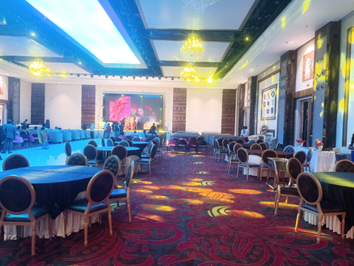 An eclectic looking Convention Centre with banqueting & catering facility ideal for grand celebrations and occasions . Spruced up with international style, customized lighting facilities to subtly suit your celebration décor needs.
